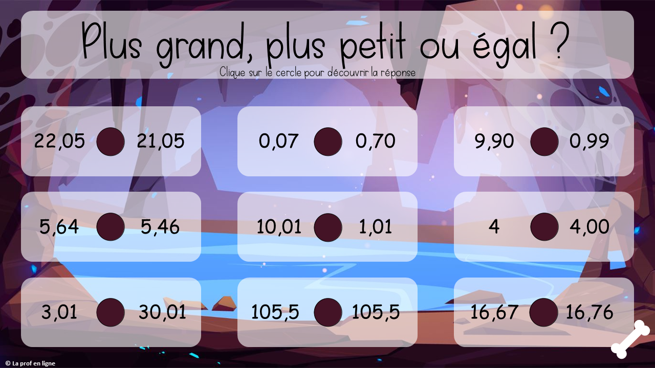 - La comparaison de nombres décimaux (plus grand, plus petit ou égal)