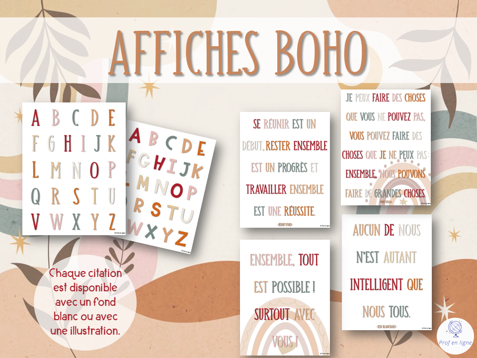 Voici 2 modèles d’affiches avec les lettres de l’alphabet, ainsi que 4 citations sur le travail d’équipe.