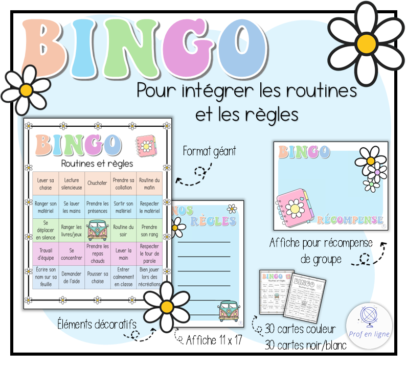 - Une affiche 11 x 17 pour y inscrire vos propres règles de classe