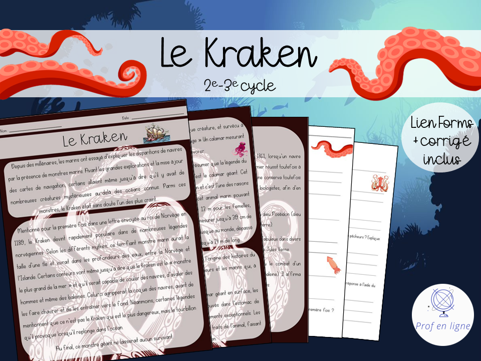 Voici une compréhension de lecture portant sur le Kraken. Idéale pour le 2e et 3e cycle, cette compréhension permet de mieux comprendre le mystère entourant cet endroit.