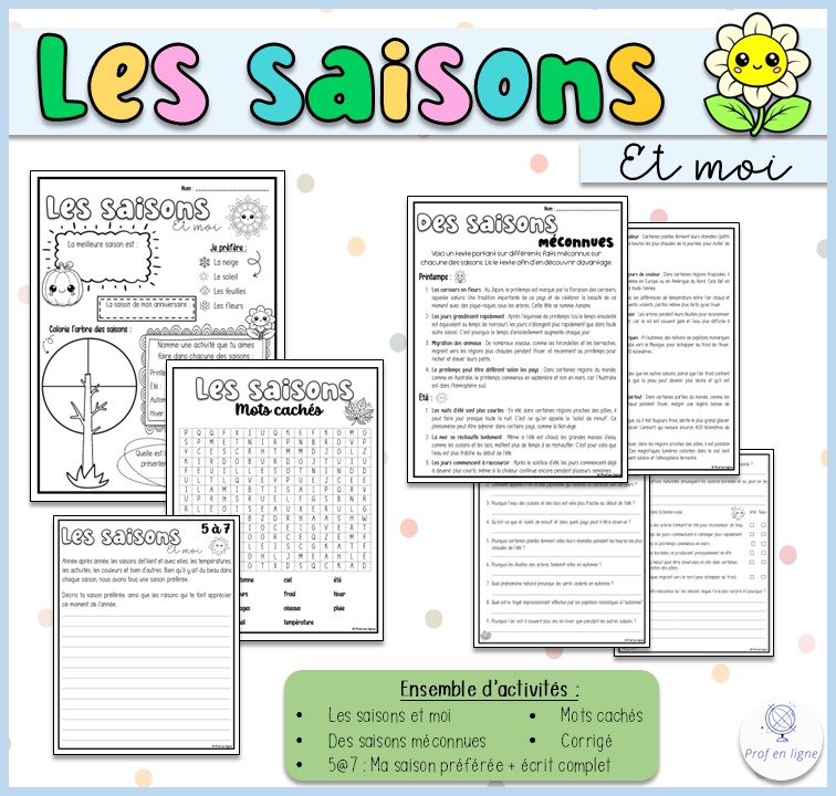 Voici un ensemble d’activités portant sur les saisons.