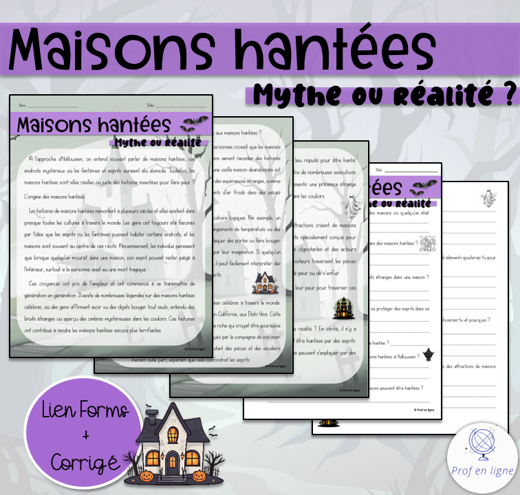 Voici une compréhension de lecture portant sur les maisons hantées. Idéale pour le 2e et 3e cycle, cette compréhension permet de mieux comprendre les superstitions entourant les maisons hantées, tout en faisant un survol de deux endroits « hantées » et les caractéristiques des maisons hantées d’Halloween.