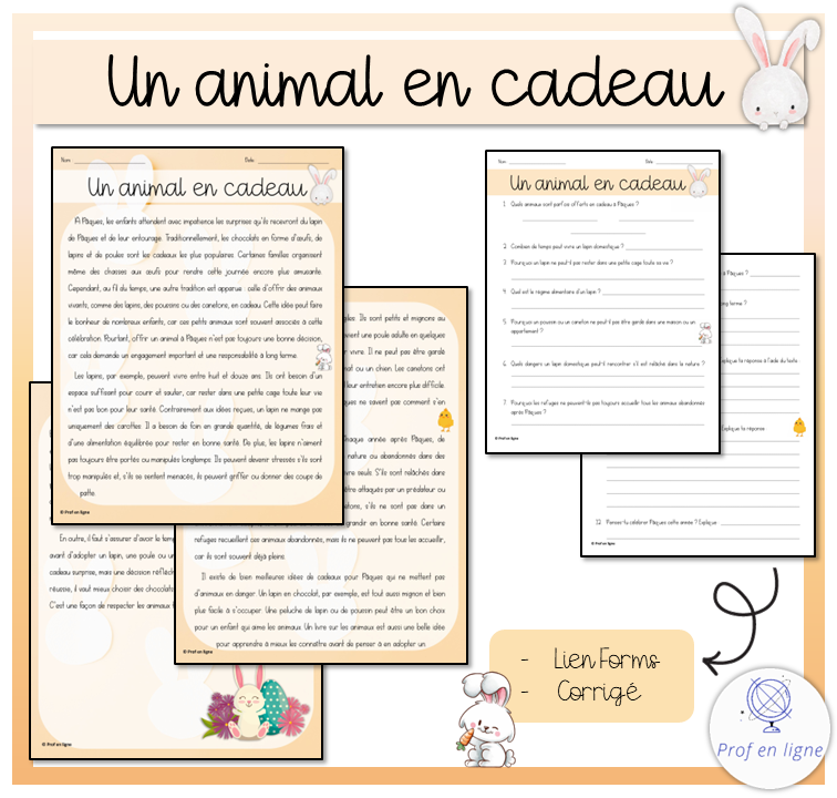 Voici une compréhension de lecture portant sur la tradition d’acheter des animaux vivants à Pâques.